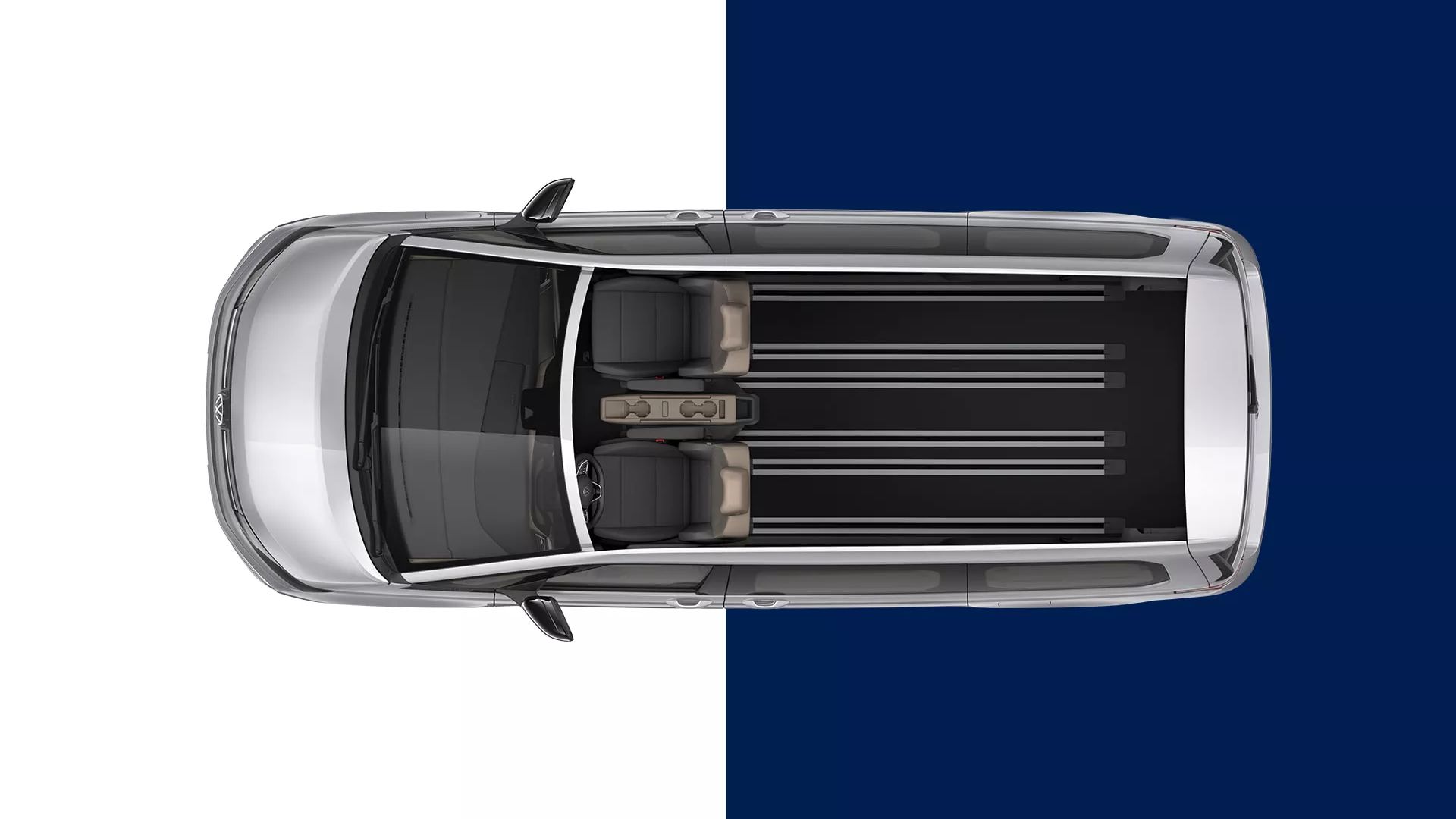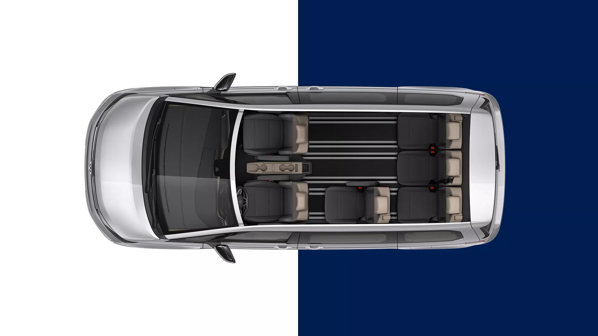 Со децении, Multivan ги воодушевува семејствата, рекреативните спортисти и професионалците. Особено популарен: неговиот патнички оддел, кој е добро обмислен до последниот детаљ. Во Multivan, неговата варијабилност, флексибилност и функционалност сега се дополнително зголемени. Целосно рамен под претставува идеална основа за индивидуалните седишта, кои за прв пат се стандардни. Во комбинација со робусните централни шини кои се протегаат во кокпитот, се отвораат широк спектар на комбинации за седење. Пет или седум индивидуални седишта Релаксирано патување во насока на патување: Линијата на опрема Multivan е опремена со пет удобни индивидуални седишта како стандард. Multivan Life и Multivan Style имаат седум седишта како стандард. Секое седиште во патничкиот простор може да се преклопи поединечно, да се помести во одредена област и лесно да се отстрани благодарение на намалувањето на тежината од околу 25%. Ова резултира со бројни варијанти на седење. На пример, можете да создадете дополнителен простор за багаж со туркање на седиштата во третиот ред седишта напред. Ако порачате Multivan со стандардна конфигурација на седиштето, затегачите на ременот на надворешните индивидуални седишта се секогаш цврсто поврзани со телото. Средното седиште има интегриран автоматски сигурносен појас во три точки и може да се помести насекаде во купето.